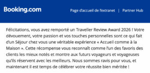 Booking nous décerne un Traveller Review Award 2026